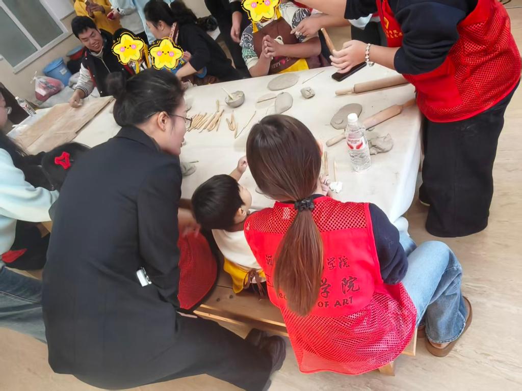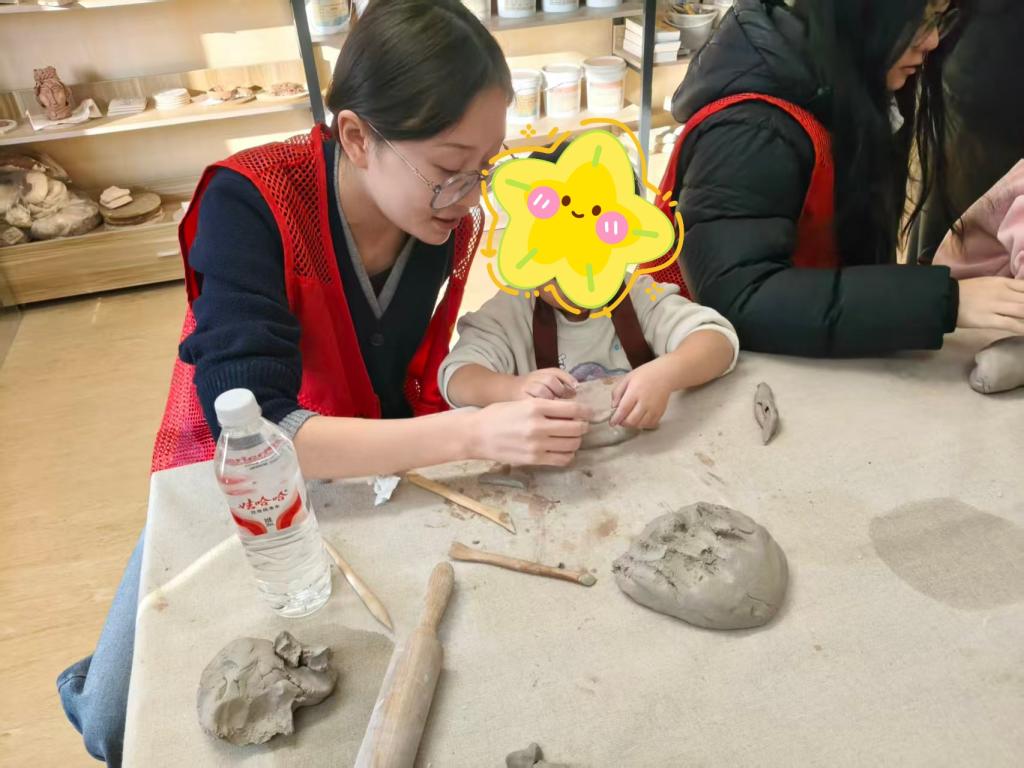 制作过程中,活动室里充满了欢声笑语。孩子们不时举起自己的作品向同伴和志愿者展示,脸上洋溢着自豪与喜悦。志愿者们穿梭在孩子们中间,手把手纠正手法,为孩子们的创意点赞,现场温情满满。活动最后,孩子们小心翼翼地捧着自己的作品合影留念,约定好下次再来给作品上色、烧制。