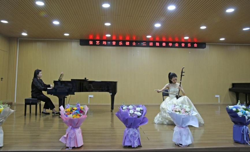 23日的舞台属于器乐方向研究生。作为毕业前的集中展示,她们的演奏成熟、自信。张丹、焦舒婷两位钢琴方向研究生先后登场,分别呈现了主题鲜明、曲目编排精心的独奏音乐会,展现了扎实的技术功底、深邃的音乐思考与成熟的个人风格。随后,二胡方向研究生张艺玮以一场充满民族神韵与现代气息的独奏会压轴首日演出,演奏融合了传统经典与当代新作,展现了民族乐器独特的艺术魅力与丰富的表现力。